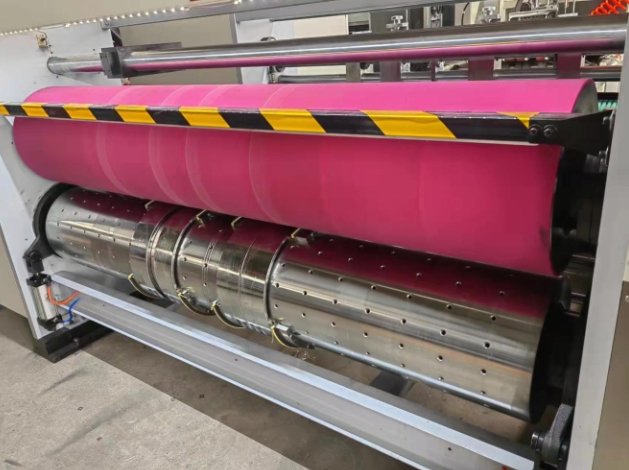 The brush-type static elimination and cleaning system effectively removes dust from the printed surface of corrugated cardboard, improving overall print quality.